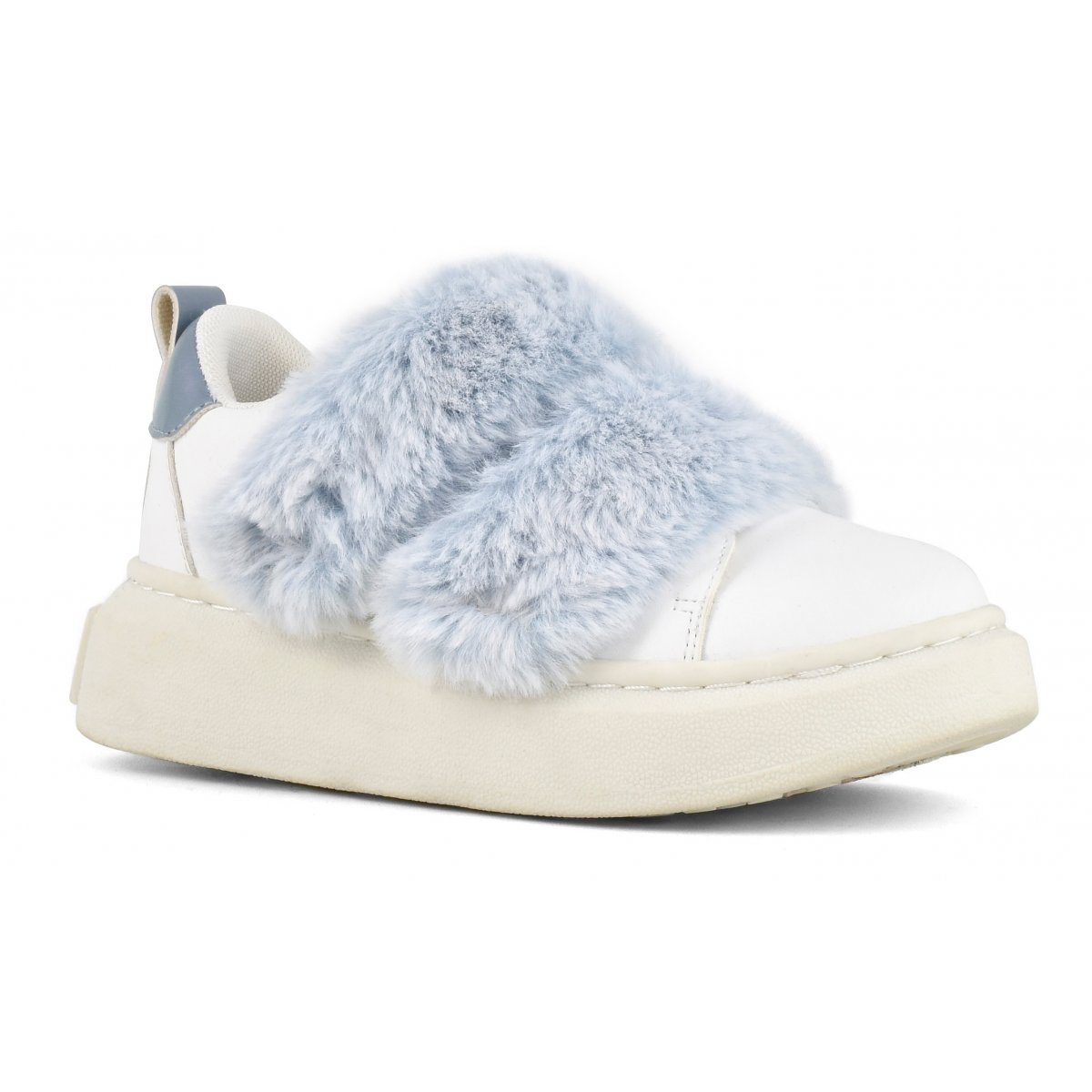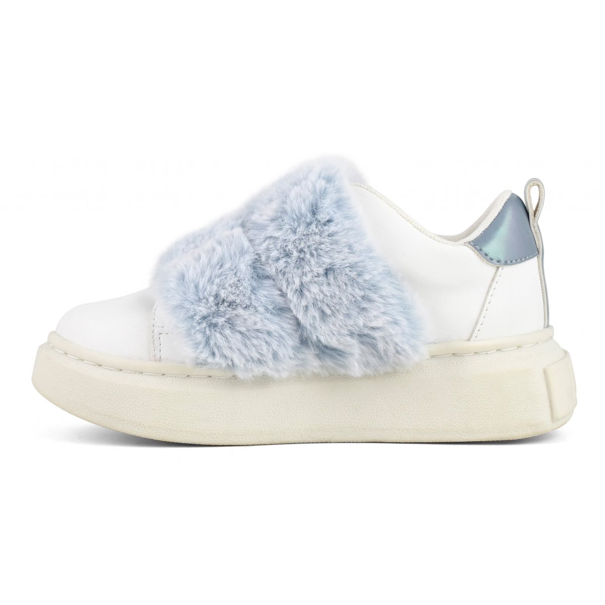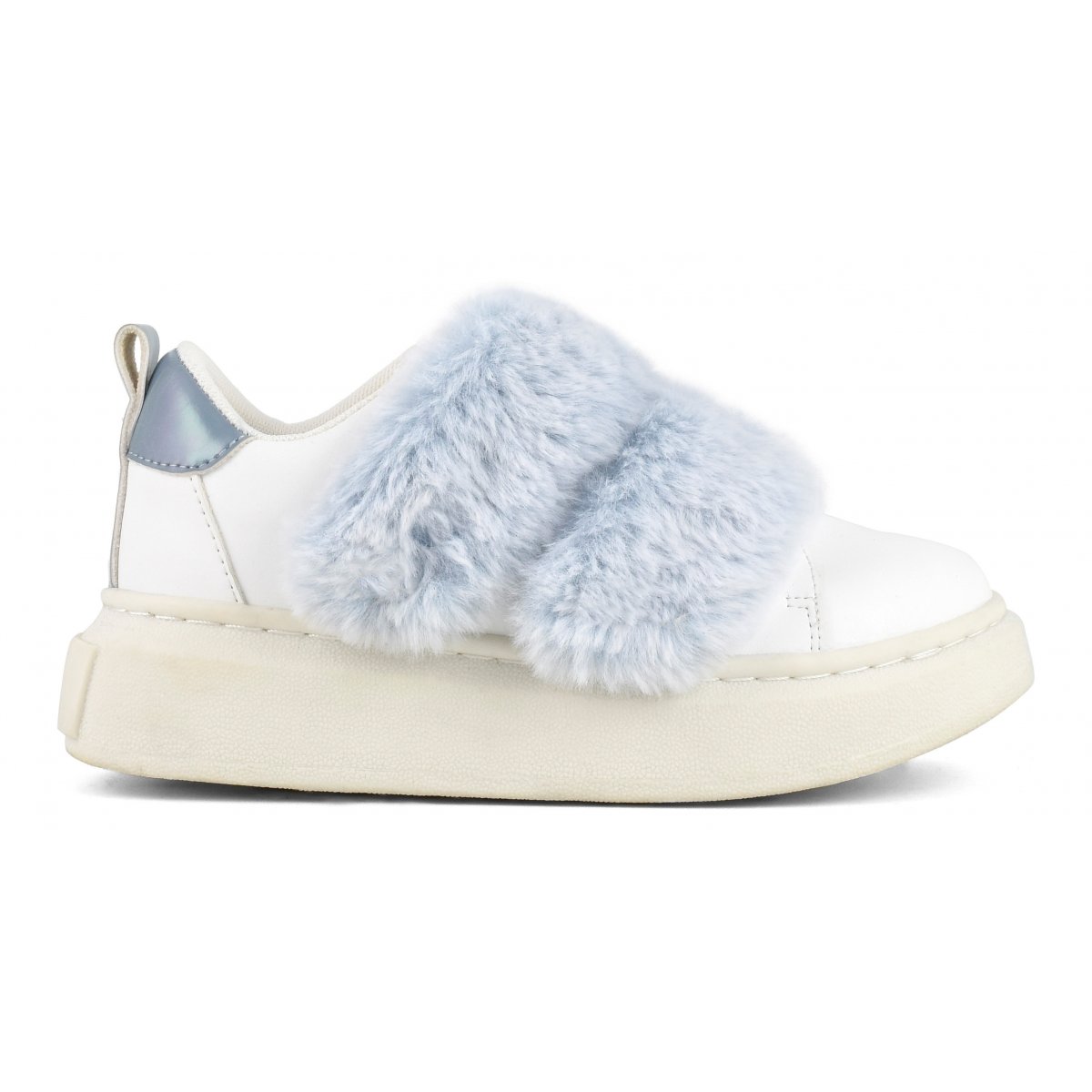 These sneakers with Velcro straps decorated with colourful faux fur will be a delight for your daughter’s’ feet. Comfortable and versatile they are perfect for all occasions: from more formal paired with a dress and a bon ton coat, to basic with jeans, a hoodie, a down jacket and these sneakers...and they will be ready to go to the park and play with their friends!