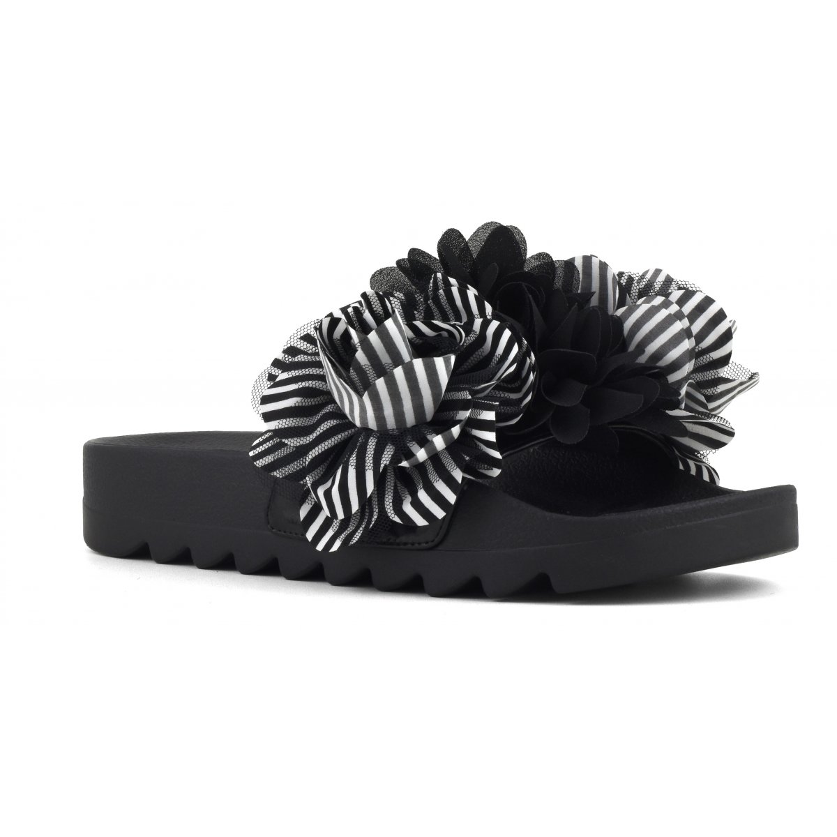 Striped fabric flower trim slide