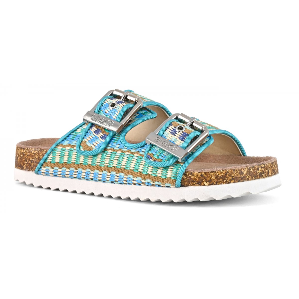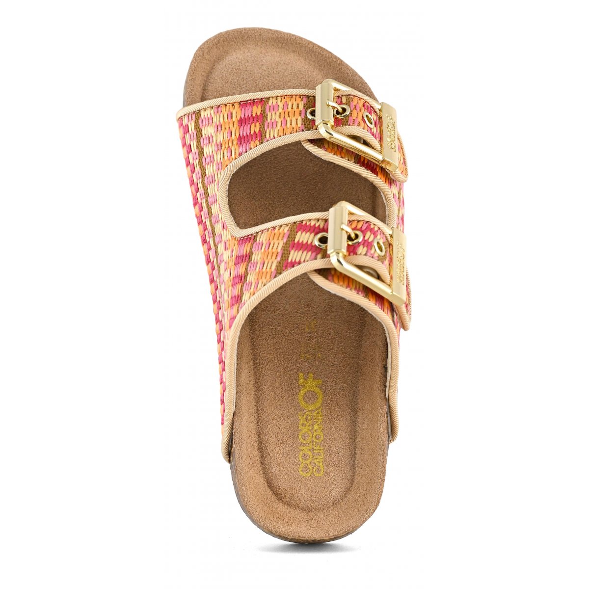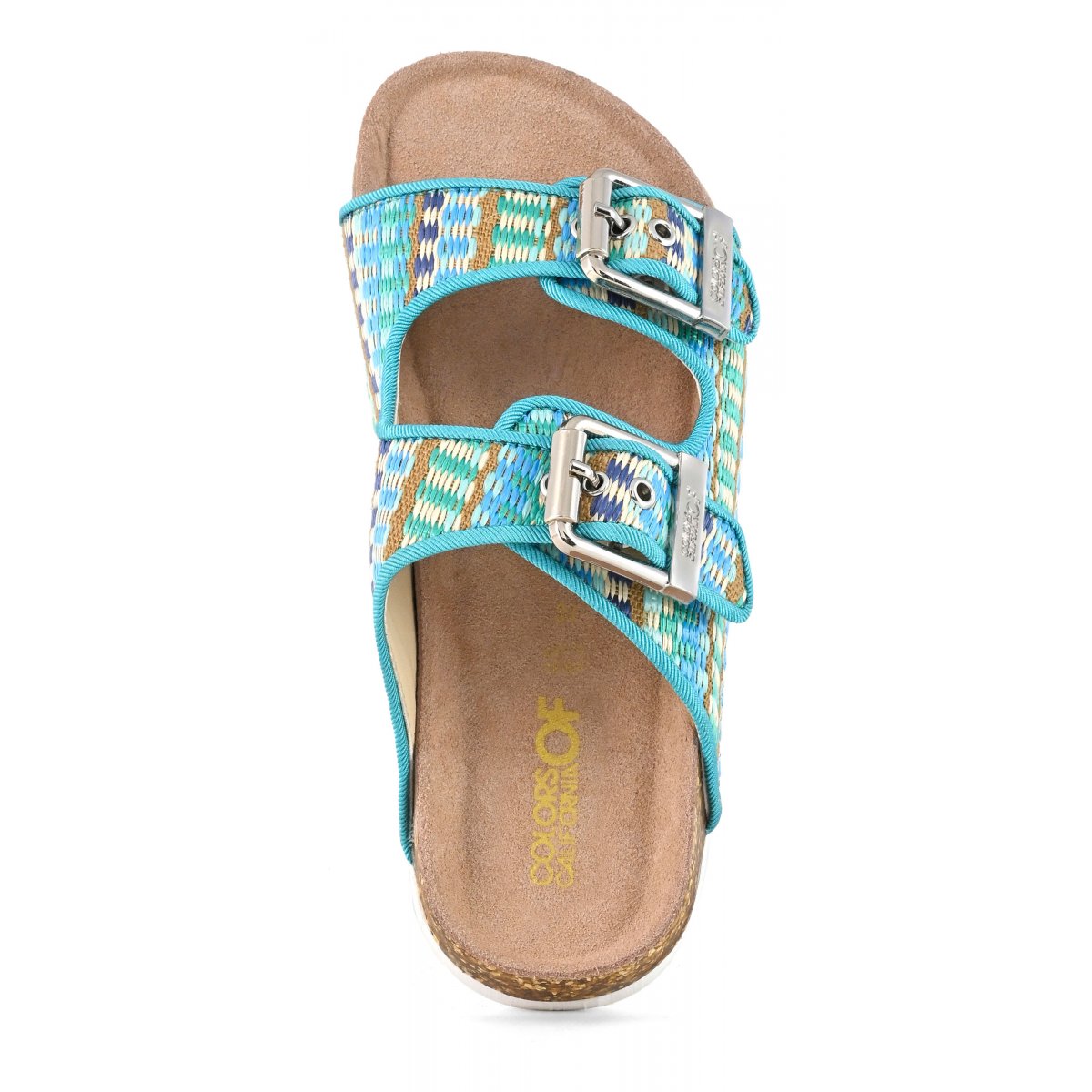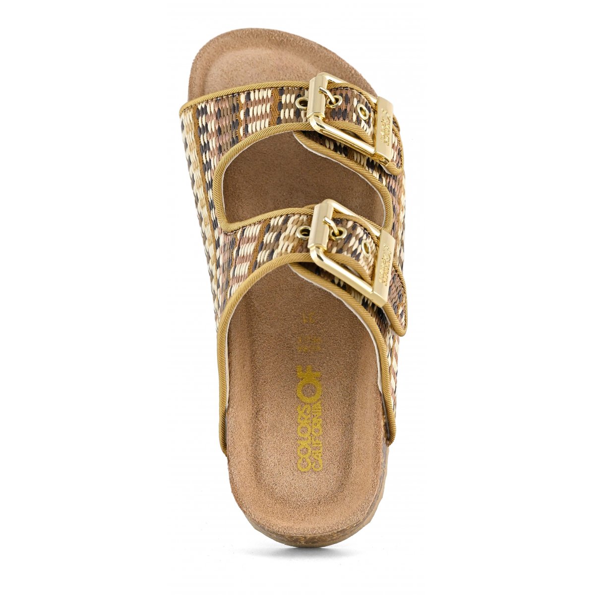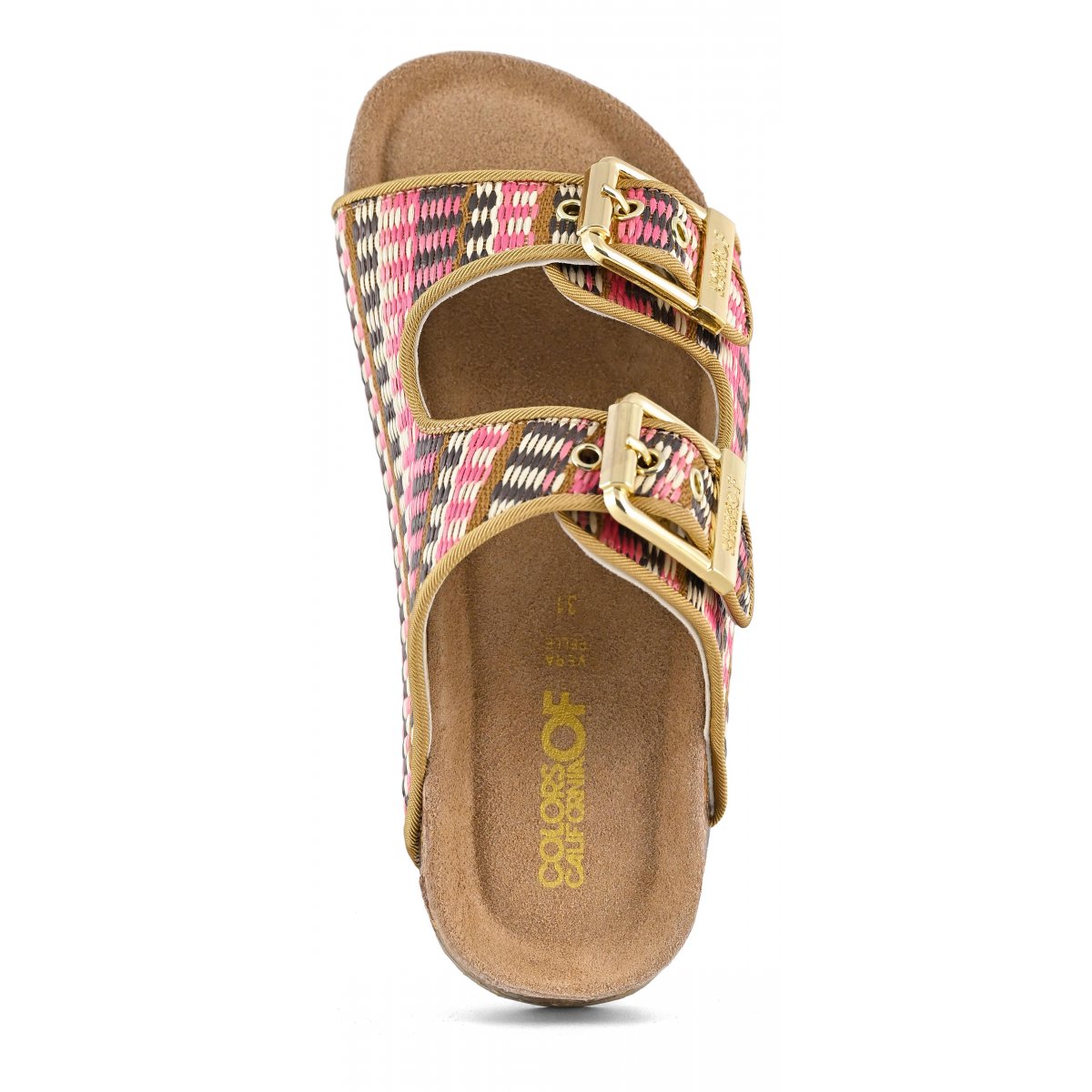 This two-band sandal has a suede insole and the upper is entirely in raffia. The two branded metal buckles create a fun, bright contrast. The perfect style for mini me's perfectly matched to their moms with a super summery style that oozes ethno-chic flavor. Perfect with total white, fresh and light outfits.