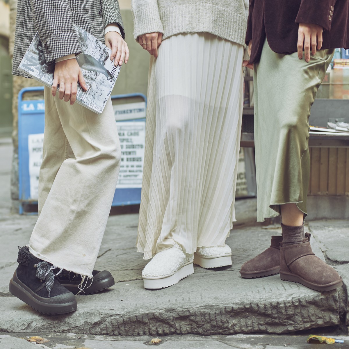 Quand le style montagnard se mêle au style urbain, cela donne un accessoire aussi confortable et glamour que celui-ci.Les bottines en daim avec semelle monobloc dans la version lacée présentent des empiècements chauds en fourrure teddy et de grands lacets bicolores. La semelle ultra-légère, de couleur contrastée, confère confort et stabilité. Désormais, les promenades en montagne seront vraiment stylées.