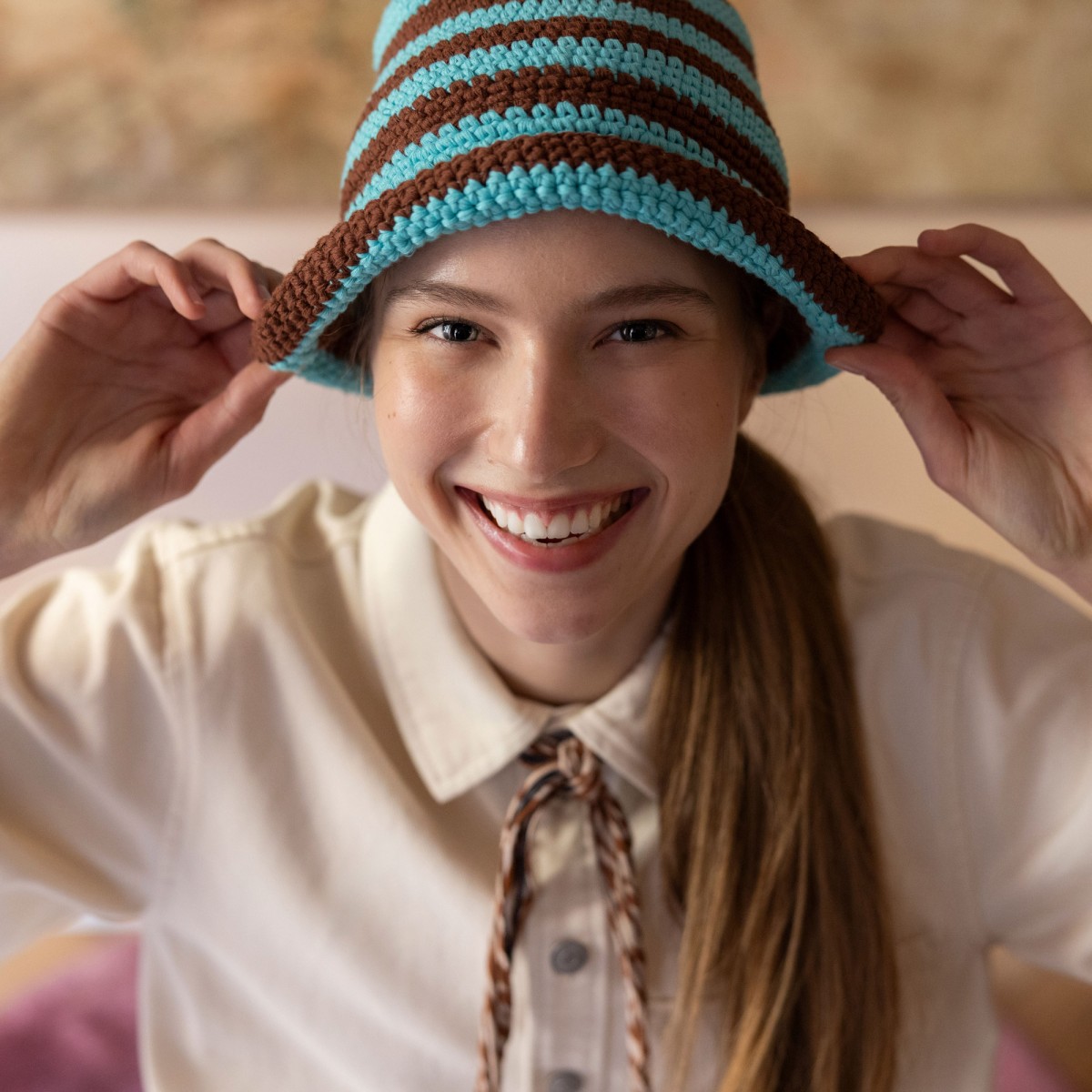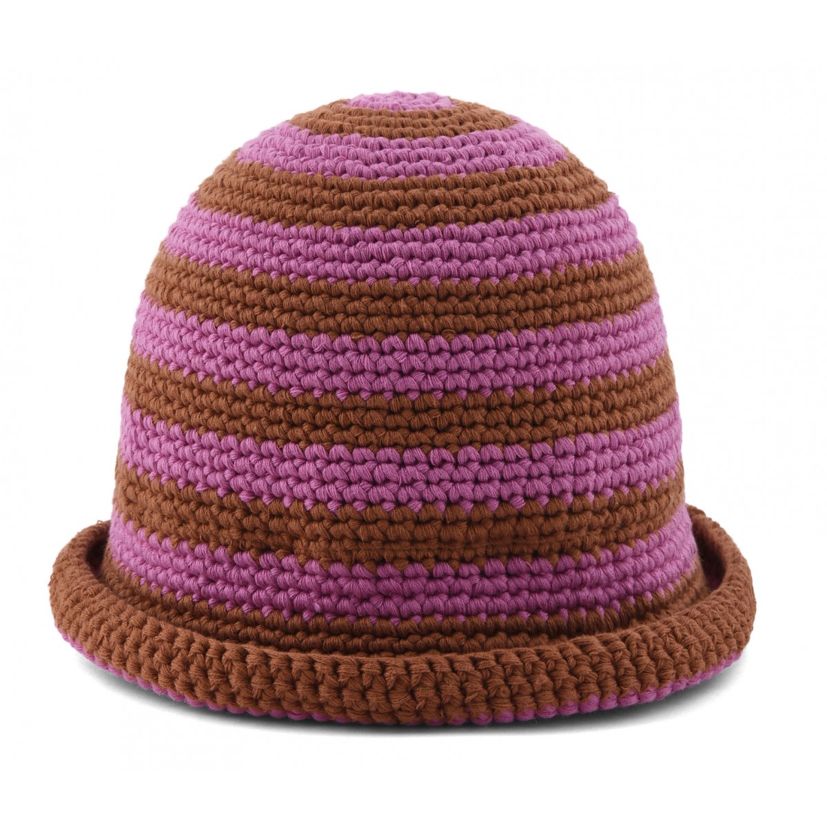 Cappello a campana in cotone a lavorazione tricot, caratterizzato da una delicata fantasia a righe rosa e bianche. La lavorazione dona struttura e leggerezza, mentre la forma morbida e avvolgente garantisce comfort e protezione dal sole. Un accessorio dal gusto estivo romantico, ideale per completare look freschi e spensierati, abiti leggeri in lino o cotone, sandali flat o espadrillas e una borsa in paglia o tessuto naturale. Ideale anche con un completo mare composto da costume intero e pareo, per un look curato e femminile dal sapore vacanziero.
