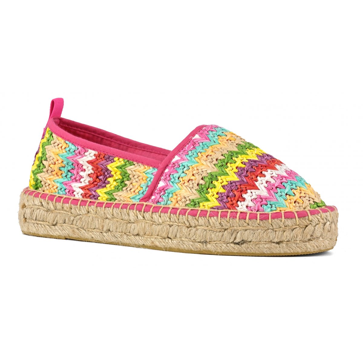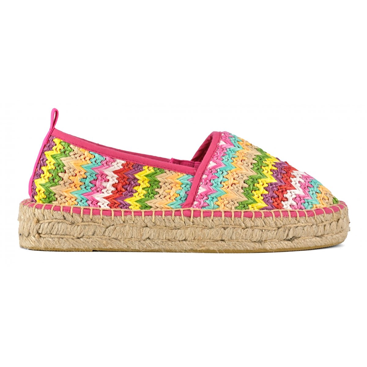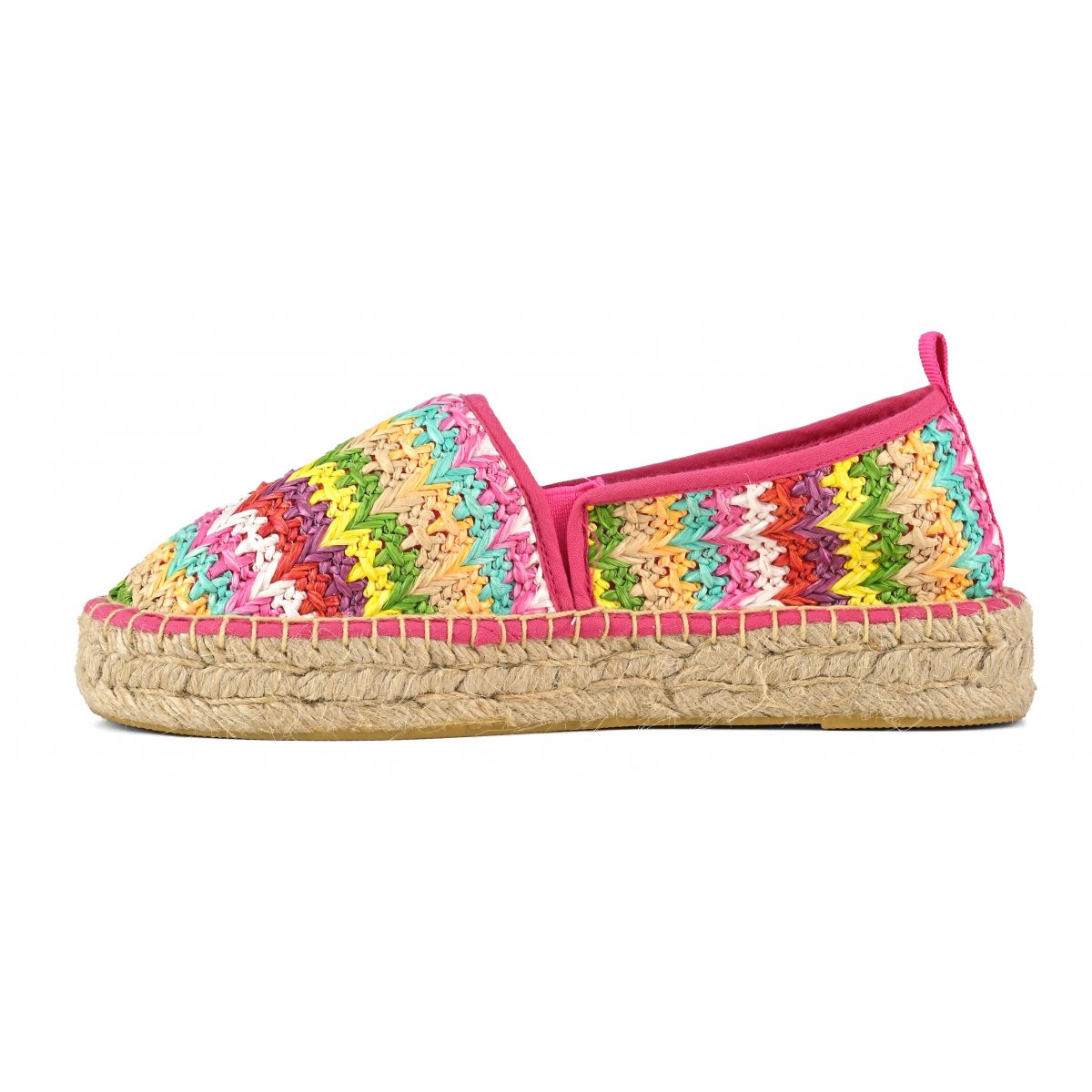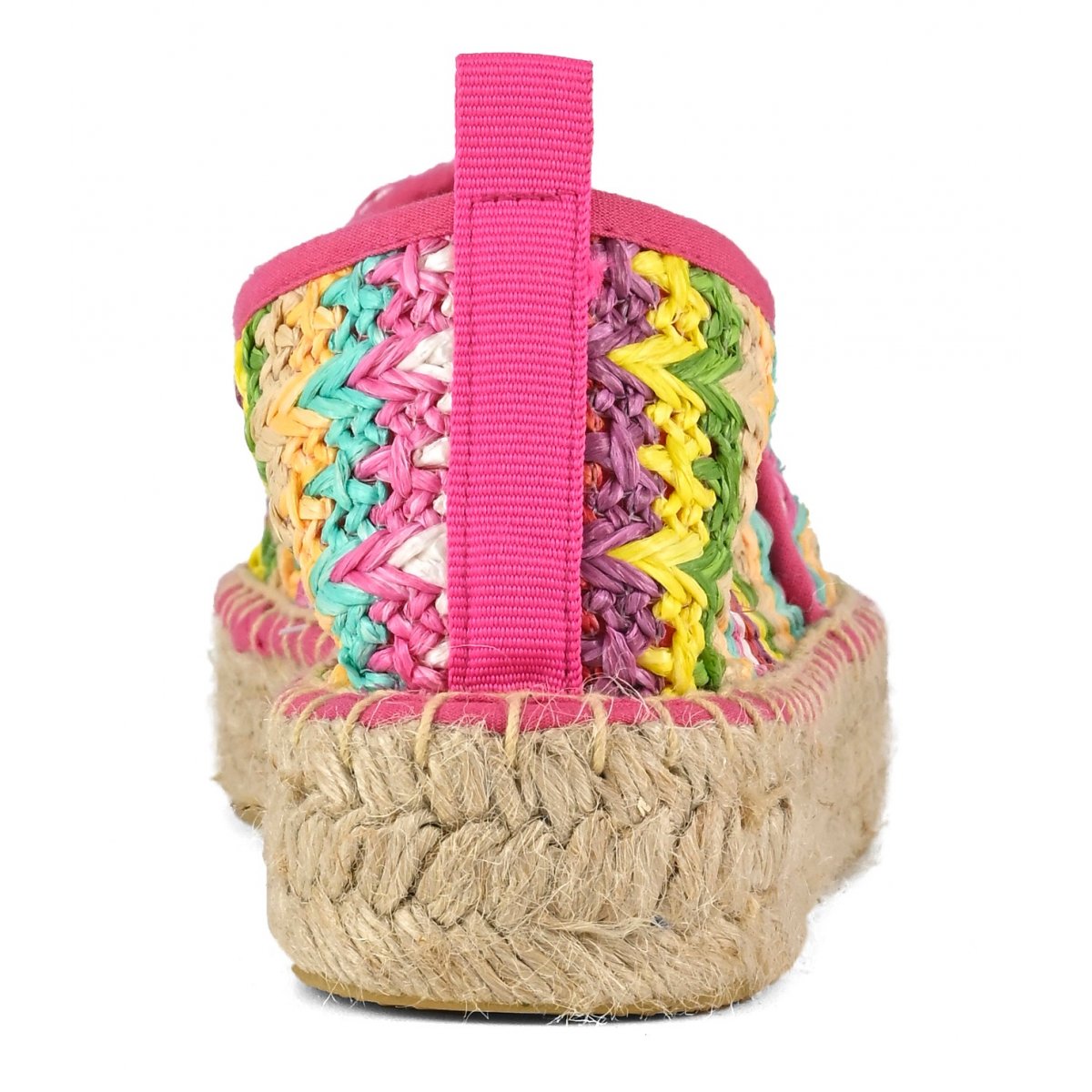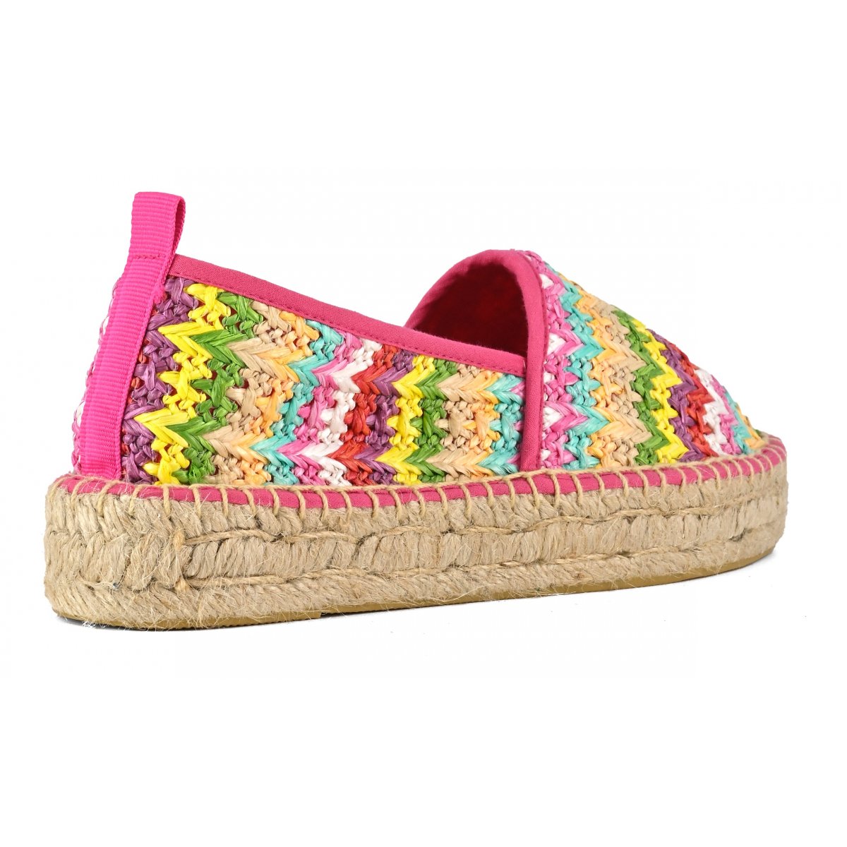 La tomaia è divisa in due sezioni di tessuto ton sur ton, dal bordo monocolore a contrasto. Perfette con look giorno giocosi e leggeri, con la salopette o maxi t-shirt portate ad abito.