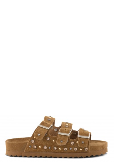 Un sandalo a doppia fascia perfetto per chi, anche in tenera età, non rinuncia al tocco sparkling e super glamour. La tomaia è infatti tempestata di glitter luminosi e le fibbie ton sur ton con logo donano a questo modello un'attitude irresistibilmente cool. Il soletto è in pelle scamosciata. Ideale con abitini in tulle o total denim.