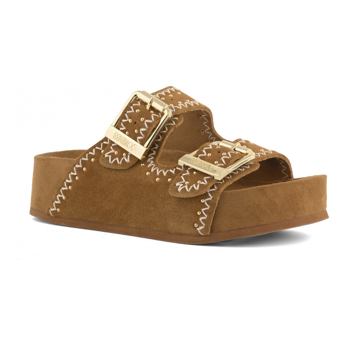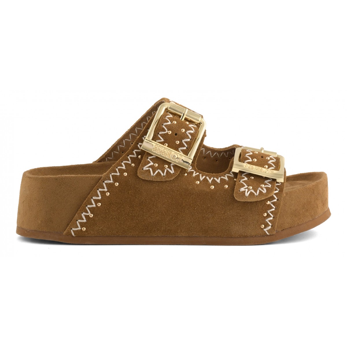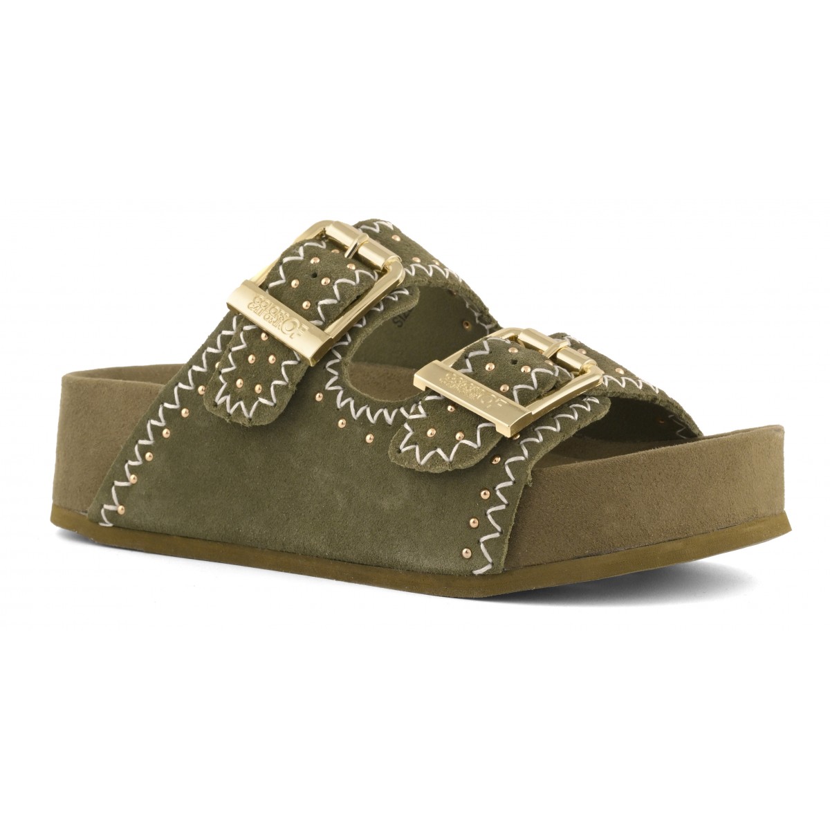 Un sandalo platform dal carattere essenziale e sofisticato, ispirato all’estetica boho-chic. La tomaia in pelle scamosciata, vellutata al tatto, è scandita dal dettaglio delle cuciture decorative, un tocco di stile unico. Le doppie fasce con fibbie regolabili garantiscono una calzata personalizzata mentre la suola alta e morbida conferisce stabilità e comfort. Un sandalo essenziale ma ricco di personalità, un valido alleato di stile, dal caftano in spiaggia al completo di lino in città.